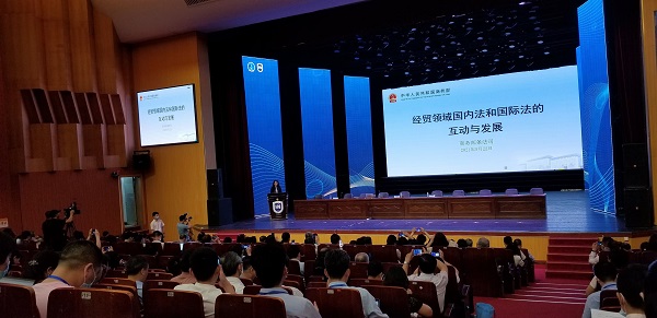 商务部条法司司长李詠箑在主旨报告中以知识产权法律体系的完善等为例,指出经贸领域国内法和国际法的互动与发展是非常频繁的,这一方面体现在中国国内产业发展创新战略的推动,另一方面也与近年来我国所谈判和承担的国际承诺有关。每一场重大的谈判所涉及的国际承诺和国际规则,都离不开国内法的发展和支撑。