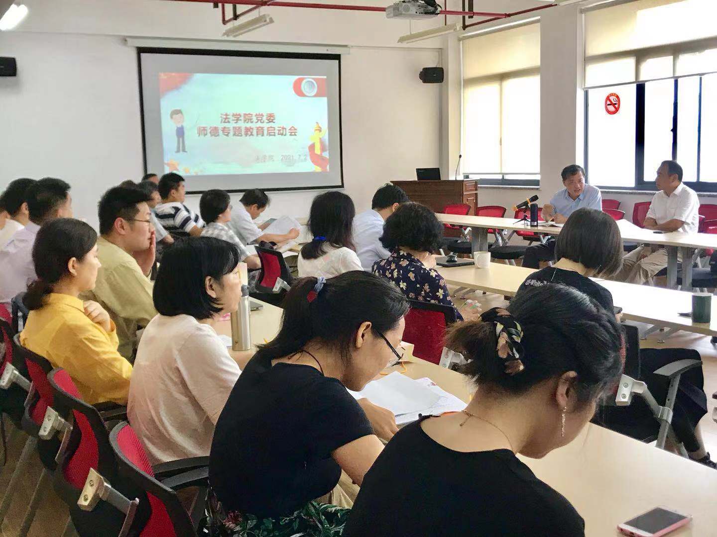 7月2日上午9:00点,77779193永利官网召开师德专题教育启动会暨《习近平总书记关于师德师风的重要论述摘编》学习会。本次会议主要传达了关于师德专题教育的相关文件精神和实施方案,并动员部署学院2021年师德专题教育工作。本次会议由学院党委书记徐国明主持,学院全体教职工悉数到会参加。