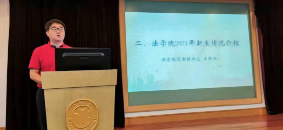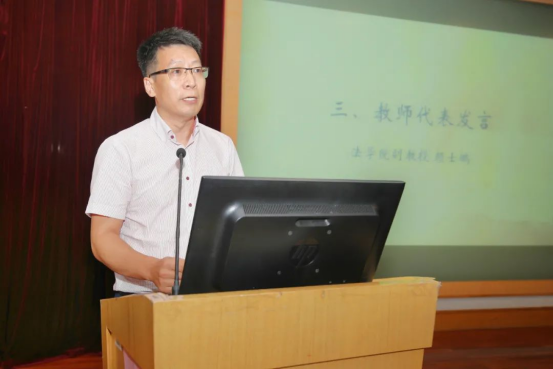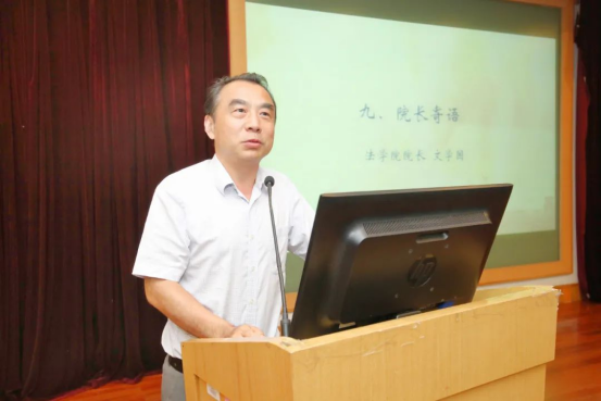 文学国院长讲话时,提出了“你们真的是热爱法学吗?”“你准备为法学的学习付出艰苦的努力吗?”“你想好了怎么来学好法学吗?”“你学会了自我管理吗?”四个问题,希望同学们真正做到把法学作为未来的职业追求,珍惜青春韶华,学会自我管理,并付出艰苦的努力,最终实现人生理想。