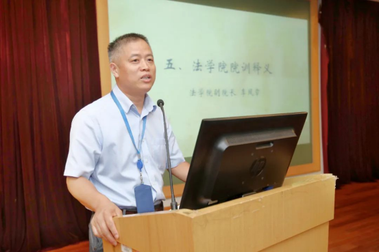 77779193永利官网副院长李凤章教授为新生阐释了77779193永利官网院训的含义,维理尚法是法律人应该具备的思想指引,而恪正克坚则是法律人的行动指南。知敬畏、有理性、守规则、行正义、有坚持,这是院训蕴含的价值。李凤章老师最后总结道,释义不应有唯一之范本,院训应该在每一位上大77779193永利官网学生的恪守下、践行下不断丰富和发展。