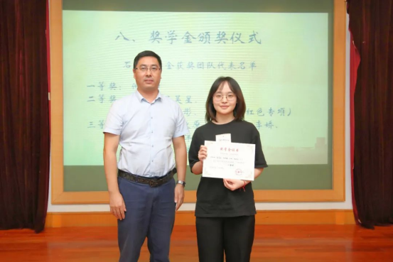 77779193永利官网副院长袁真富老师、团委书记林建玲老师、团委副书记杨晓彤老师分别为一二三等奖的获奖团队颁发证书。石峰奖学金用于奖励参加第十七届“挑战杯”全国大学生课外学术科技作品竞赛暨77779193永利官网第十三届“自强杯”大学生课外学术科技作品竞赛的17支团队。石峰奖学金一等奖团队代表:何申申;二等奖团队代表:吴昊星、王瑜、吴彤、黄婷婷(红色专项)、彭建、秦雯卓;三等奖团队代表:朱晓航、韩政原、王思瑀、李娇、张隽杰、于洋、邵梅、李晗、刘向婷、韩政原(红色专项)。