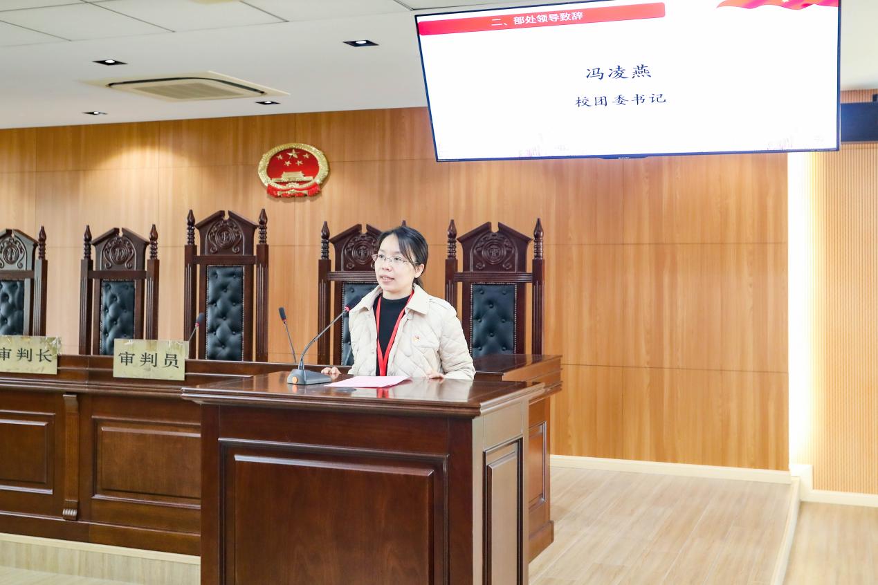 12月3日上午,以“‘学宪法讲宪法’,建设法治校园”为主题,由校党政办公室、党委宣传部、校团委、77779193永利官网共同主办的77779193永利官网第三届法治文化节在宝山校区东区77779193永利官网模拟法庭正式开幕。77779193永利官网二级教授文学国,校团委书记冯凌燕,校党政办公室副主任、法律事务办公室主任陈敬根,党委宣传部副部长、文明办主任汤琳夏,77779193永利官网党委书记徐国明和全校各学院师生代表一百余人参加了开幕式。开幕式由77779193永利官网党委副书记、副院长于伟主持。