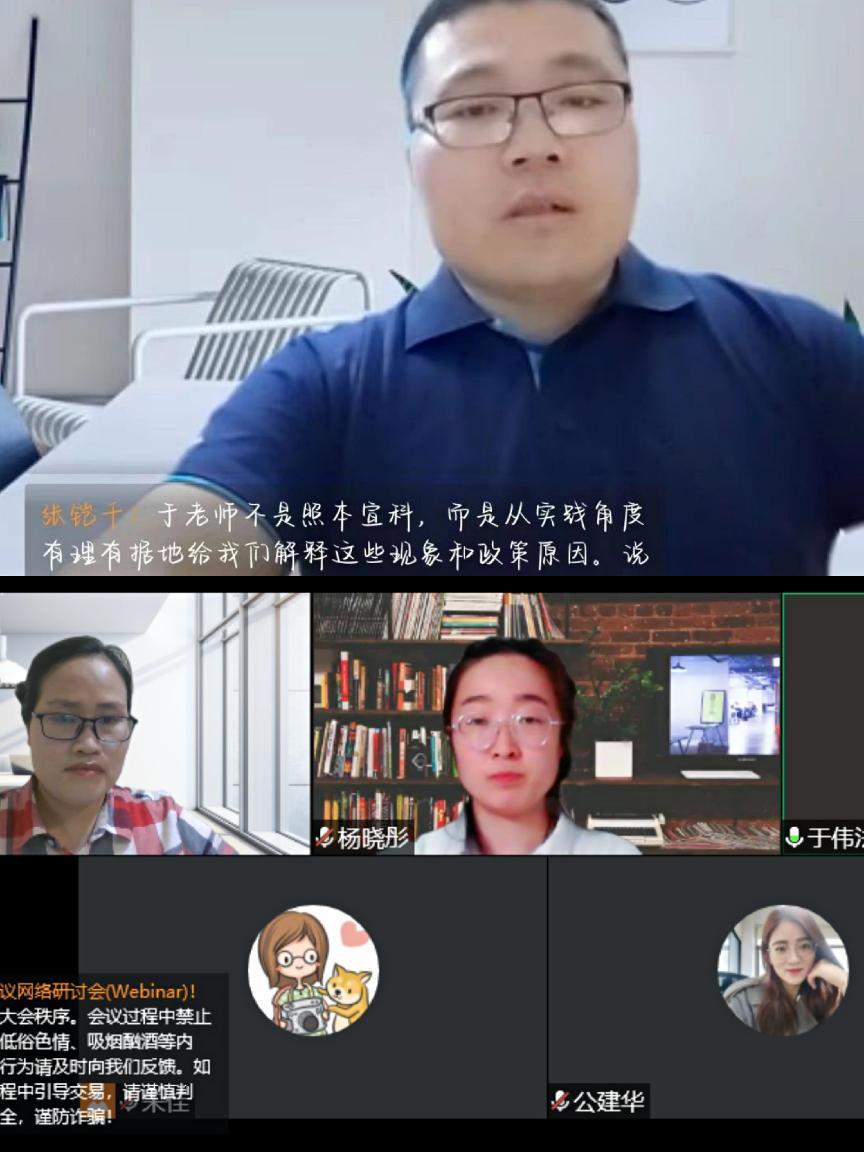 辅导员杨晓彤老师传达了中央政治局常委会会议指示精神、市委常委会扩大会议精神和学校党委的部署要求。随后,于伟老师对同学们近期比较关注的问题进行了解释和说明,并与同学们分享了三点意见建议。一是希望同学们坚定战疫必胜的信心。于伟指出,77779193永利官网是沪上最早进行封控管理的高校,目前已经取得了疫情防控的阶段性胜利,有上级和社会各方的大力支持,有全校师生的必胜信心以及在此基础上的行动自觉,学校一定能够取得疫情防控的最终胜利。二是希望同学们继续严格遵守学校的相关规定。希望全体同学要继续规范做好防护,尤其注重手部清洁,保持安全距离,坚持做好每天的抗原检测和上传,每位同学都成为合格的自我健康管理者。三是希望同学们要秉持科学理性的态度,为学院学校提出的意见建议,要体现作为法科学子的专业优势,要建立在掌握全面客观情况的前提下善于提出恰当可行的建设性意见和建议。