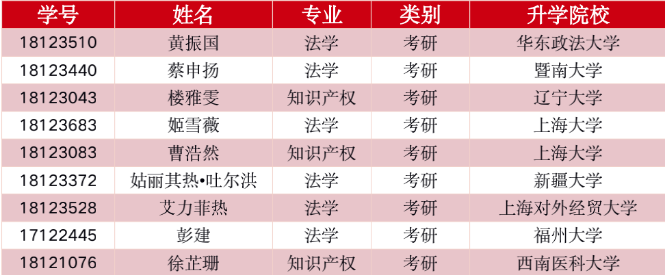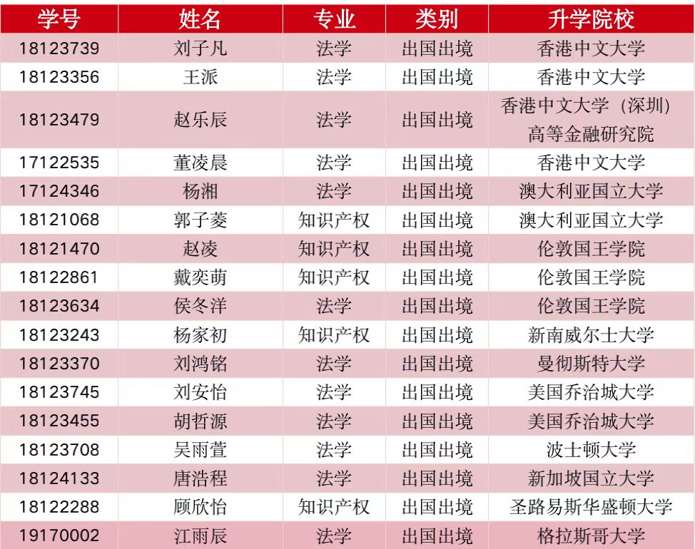 截至2022年6月23日,永利官网2022届毕业生共有42名同学升学深造。其中15名同学保研,9名同学读研,17名同学出国(境)留学,1名同学读博。