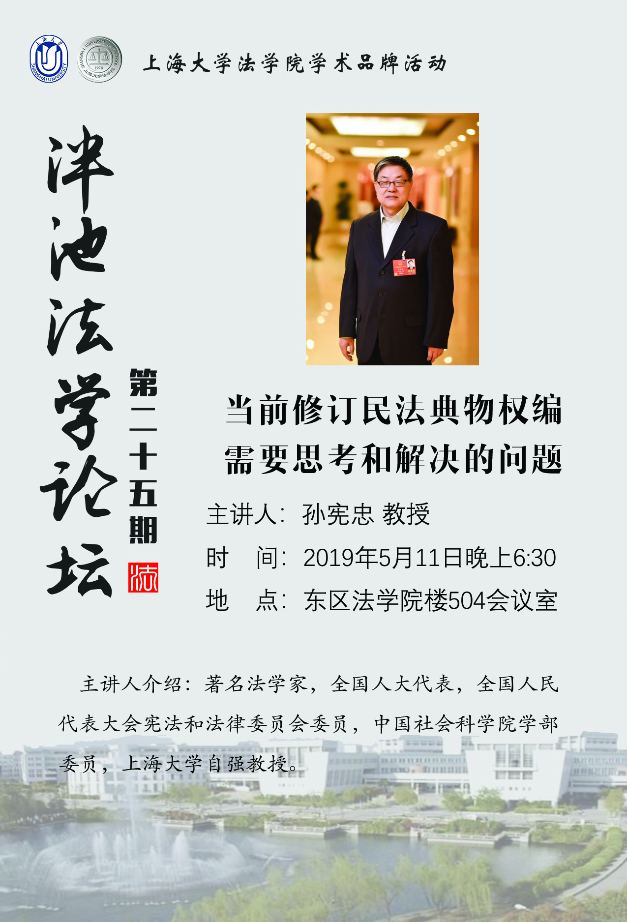 泮池法学论坛第25期:当前修订民法典物权编需要思考和解决的问题(2019年5月11日晚6:30)