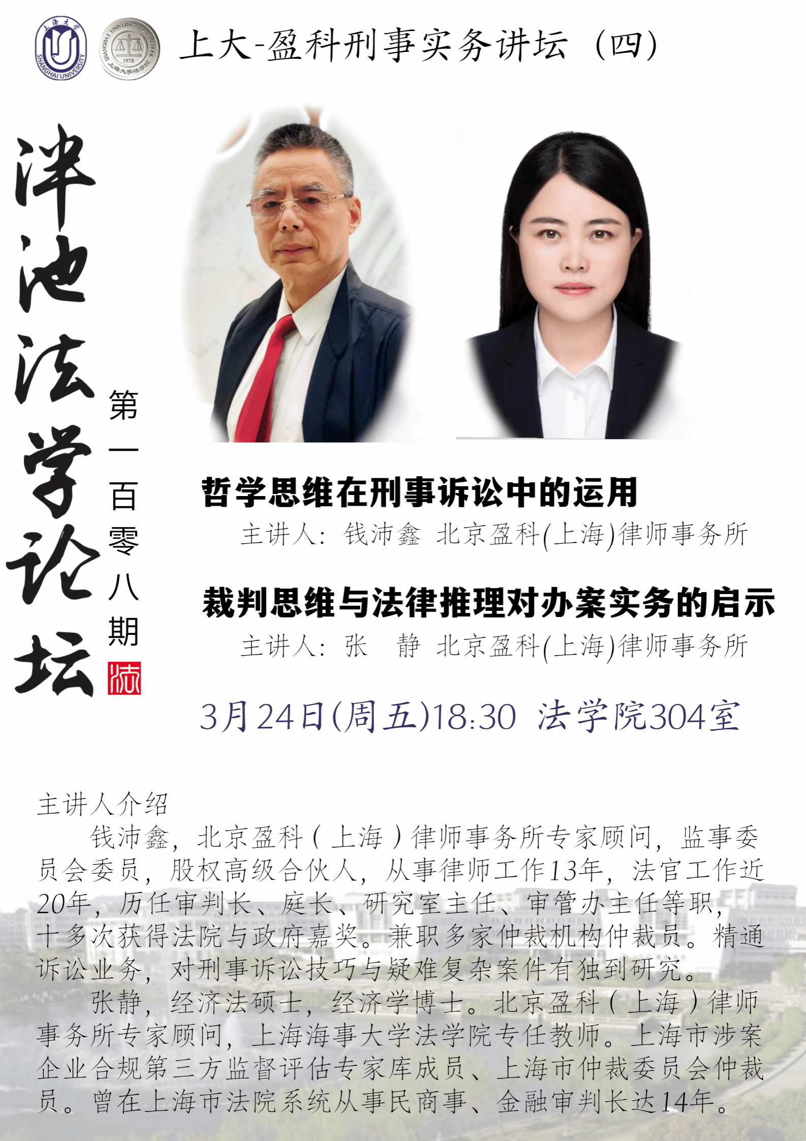 泮池法学论坛第108期:哲学思维在刑事诉讼中的运用和裁判思维与法律推理对办案实务的启示