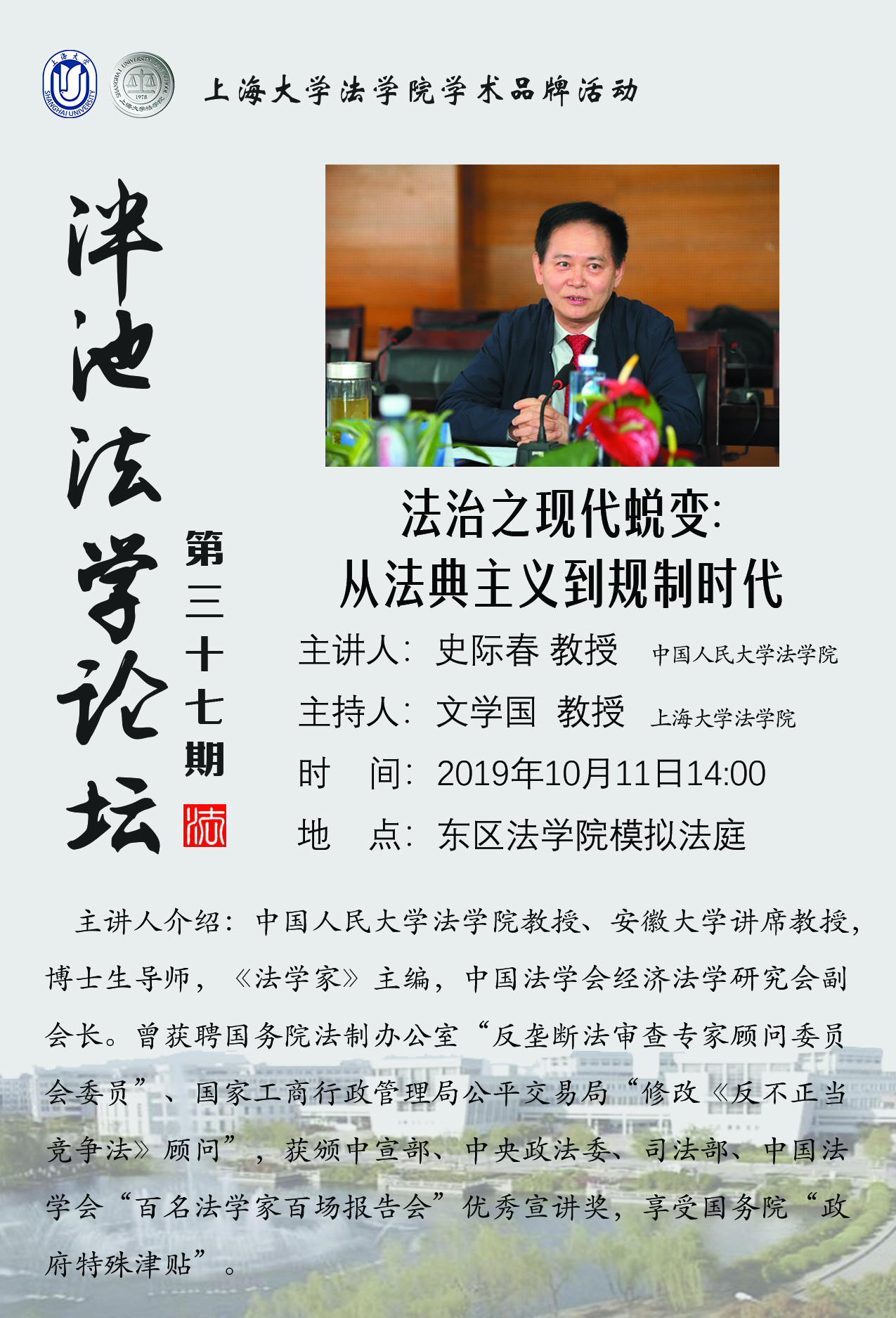 泮池法学论坛第37期预告:法治之现代蜕变从法典主义到规制时代