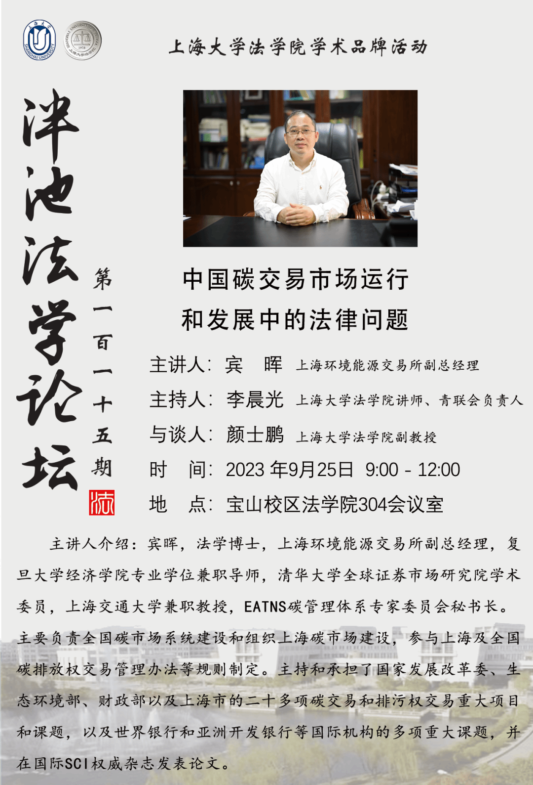 泮池法学论坛第115期 :中国碳交易市场运行和发展中的法律问题