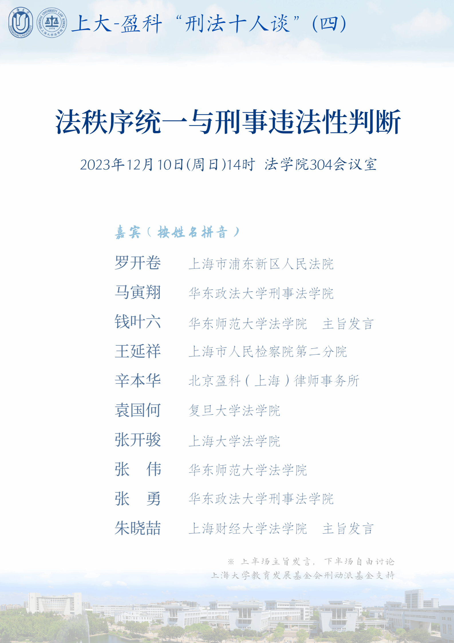 上大-盈科“刑法十人谈”(四):法秩序统一与刑事违法性判断