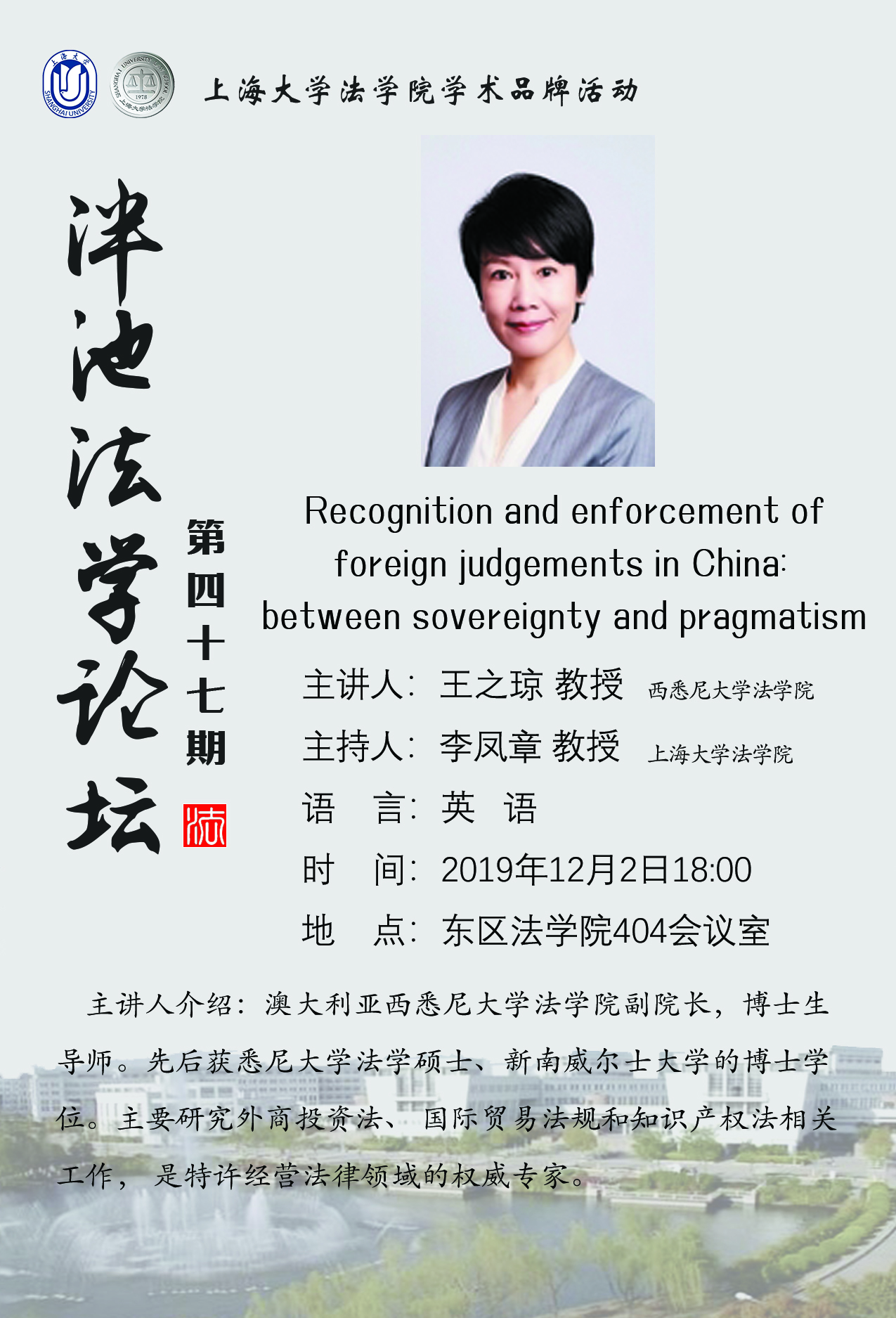 泮池法学论坛第47期预告:Recognition and enforcement of foreign judgements in China: between sovereignty and pragmatism