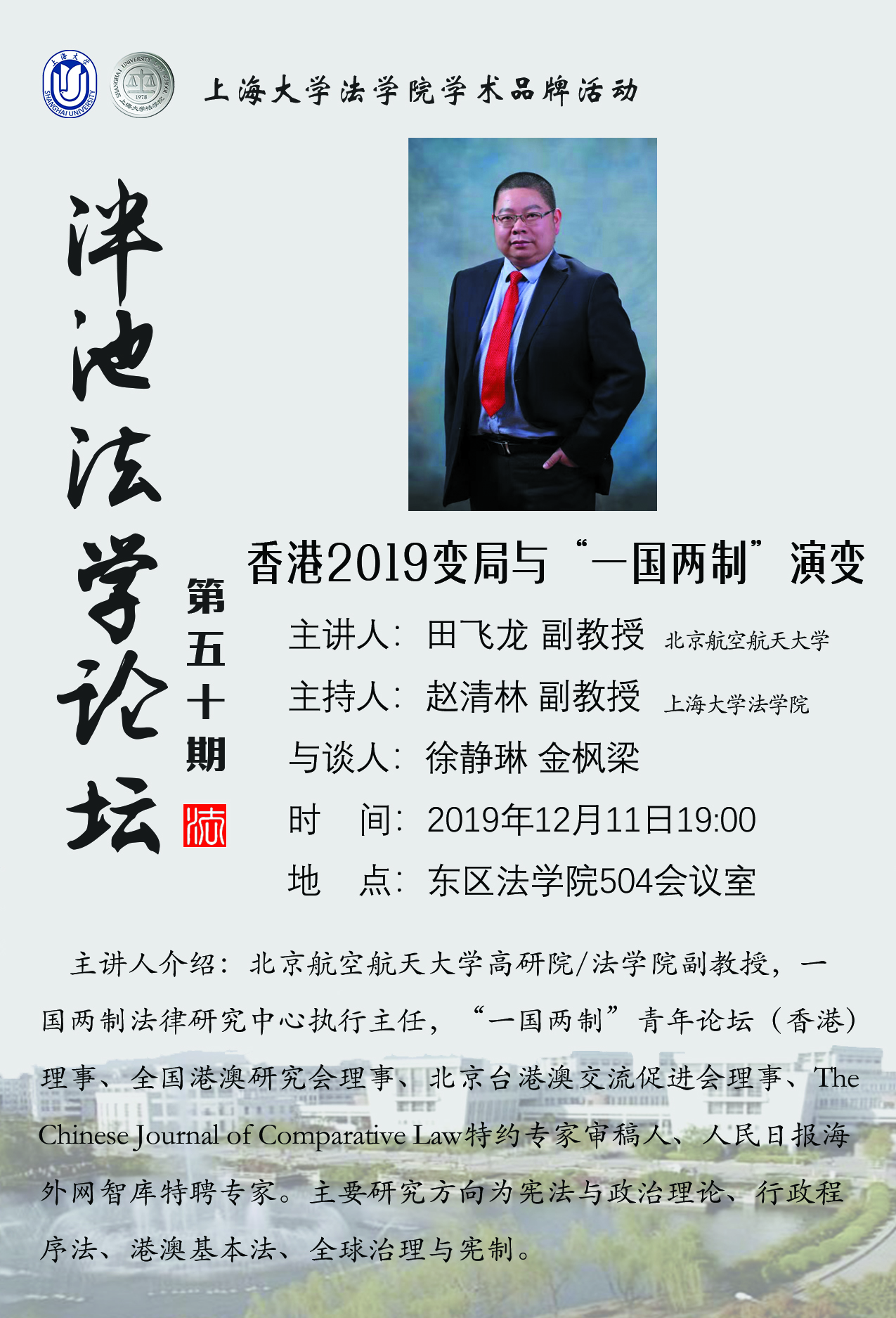 泮池法学论坛第50期预告:香港2019变局与“一国两制”演变