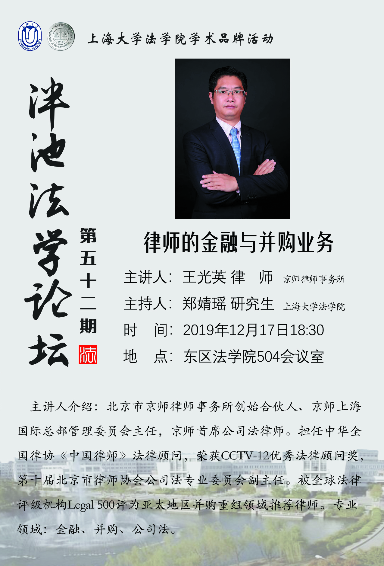 泮池法学论坛第52期预告:律师的金融与并购业务