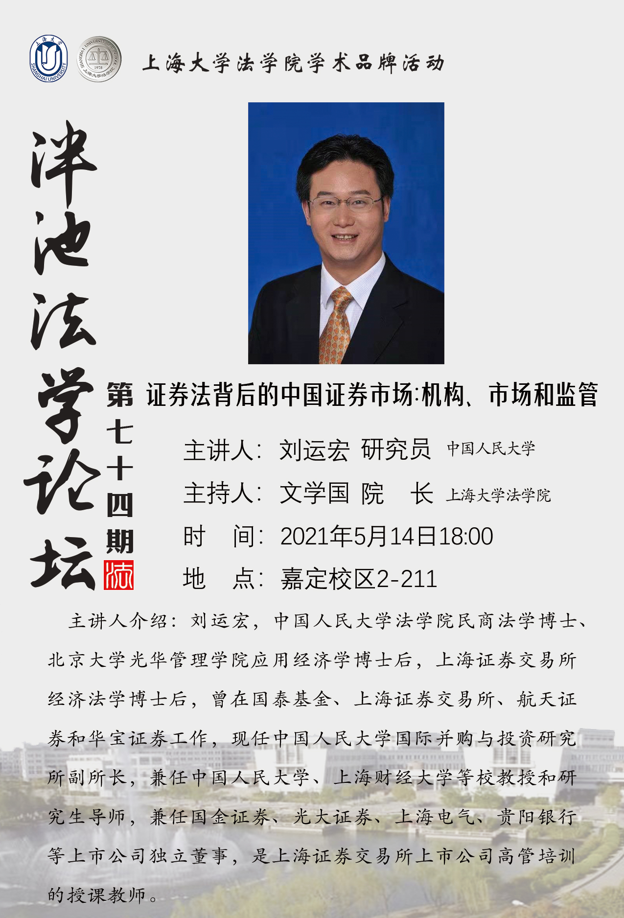 泮池法学论坛第74期预告:证券法背后的中国证券市场:机构、市场和监管