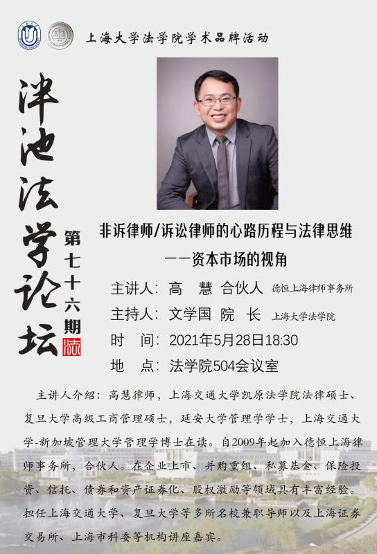 泮池法学论坛第76期预告:非诉律师/诉讼律师的心路历程与法律思维——资本市场的视角