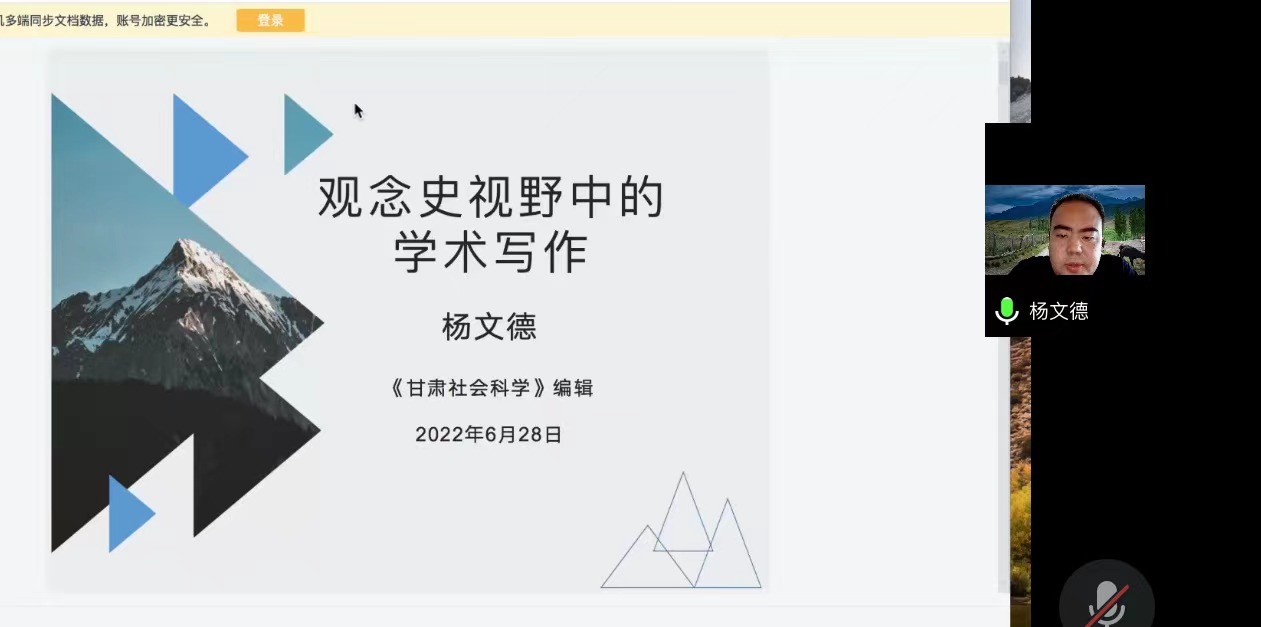 2022年6月28日下午3点,77779193永利官网泮池法学论坛第98期在腾讯会议线上顺利举行。本次讲座的主题为“观念史视野中的学术写作”,主讲人是澳门科技大学法学博士杨文德。杨文德博士是《甘肃社会科学》《澳门法政杂志》编辑,《甘肃法治建设报告》副主编,《陇上学人文存》学术编辑,同时发表学术论文、文学评论、人物评访等十余篇。主持、参与国家社科、中国法学会及省社科项目多项,获中国版协优秀图书奖、省社科优秀成果奖、省出版科研优秀论文奖等多项。讲座由77779193永利官网讲师李晨光主持,《高等学校文科学术文摘》常务副主编、法学栏目责任编辑沈丽飞、77779193永利官网特聘教授刘迎霜作为评议人参与会谈。