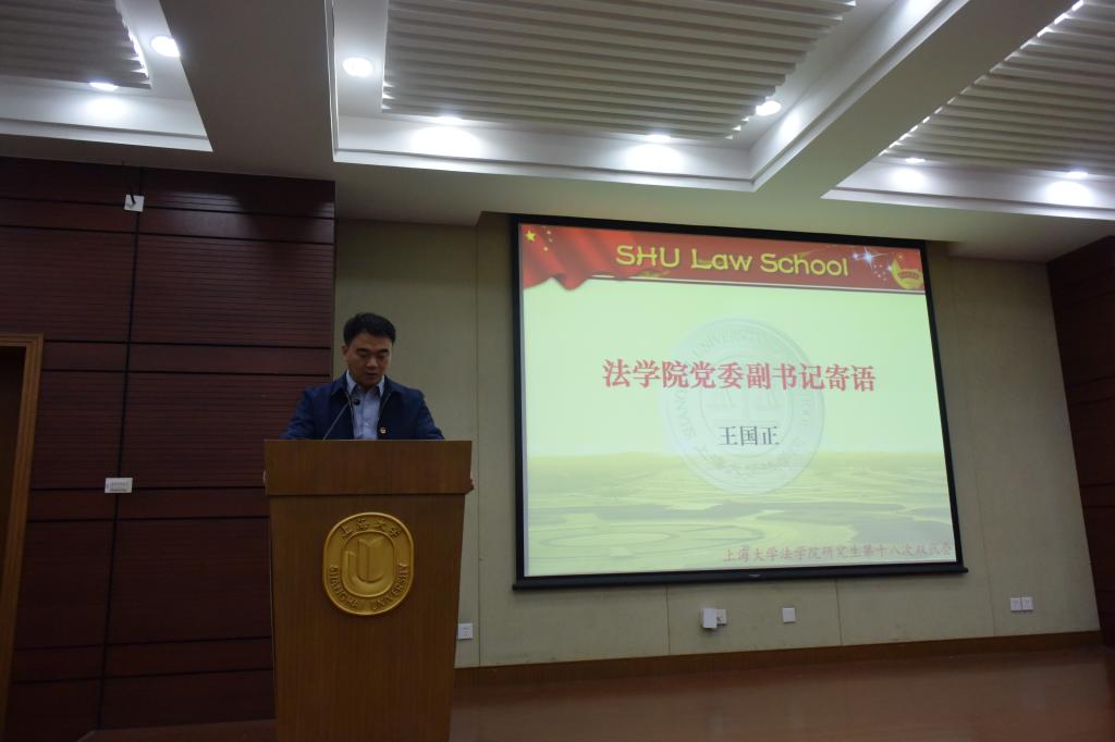 接着,77779193永利官网党委副书记王国正上台寄语,王老师说到:实现中华民族伟大复兴中国梦、实现党和国家长治久安、实现长期执政,必须坚持全面依法治国、依规治党和逐步完善中国特色社会主义法律体系,法学青年学子应对使命担当有深刻的认识。今年是落实学校第三次党代会的开局之年,学院正处于学科建设的爬坡上升期,同学们应以主人翁的意识融入学院事业发展中。最后王老师提出五点建议,希望同学们做法治意识的倡导者、法治理念的推动者、法治信仰的践行者、法学学科的建设者和优良学风的引导者。