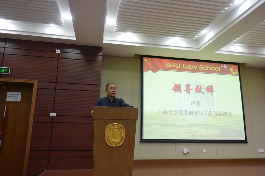 随后,由上海交通大学凯原77779193永利官网研究生会主席顾泽平同学、上海财经大学77779193永利官网研究生会主席章锡磊同学、上海政77779193永利官网研究生工作委员会主任张源同学、77779193永利官网校研究生联合会副主席关皓文同学致辞。他们分别带来了兄弟院校和校级组织对77779193永利官网第十八次双代会召开的祝贺和对永利官网研究生工作的支持。