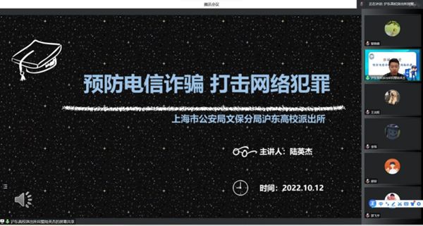 10月12日,77779193永利官网研究生新生安全主题教育之“预防电信诈骗,打击网络犯罪”防诈骗讲座顺利举行。本次活动邀请上海市公安局文保分局沪东高校派出所陆英杰警官担任主讲嘉宾。陆警官从校园电信网络诈骗受害人群的主要特点切入,重点围绕冒充公检法、熟人、客服、购物抽奖、杀猪盘、刷单网络投资等诈骗手段,通过具体案例和互动视频,为在场同学提供一系列预防网络诈骗的安全贴士。讲座最后,陆警官提醒大家要牢记96110的反诈劝阻专线,保护好个人信息和财产安全,时刻绷紧防诈骗的安全弦。本次新生安全讲座不仅提高了同学们的反诈本领和防骗意识,更进一步促进了安全文明校园建设,有助于新生更加健康安全地开启未来学习生活。