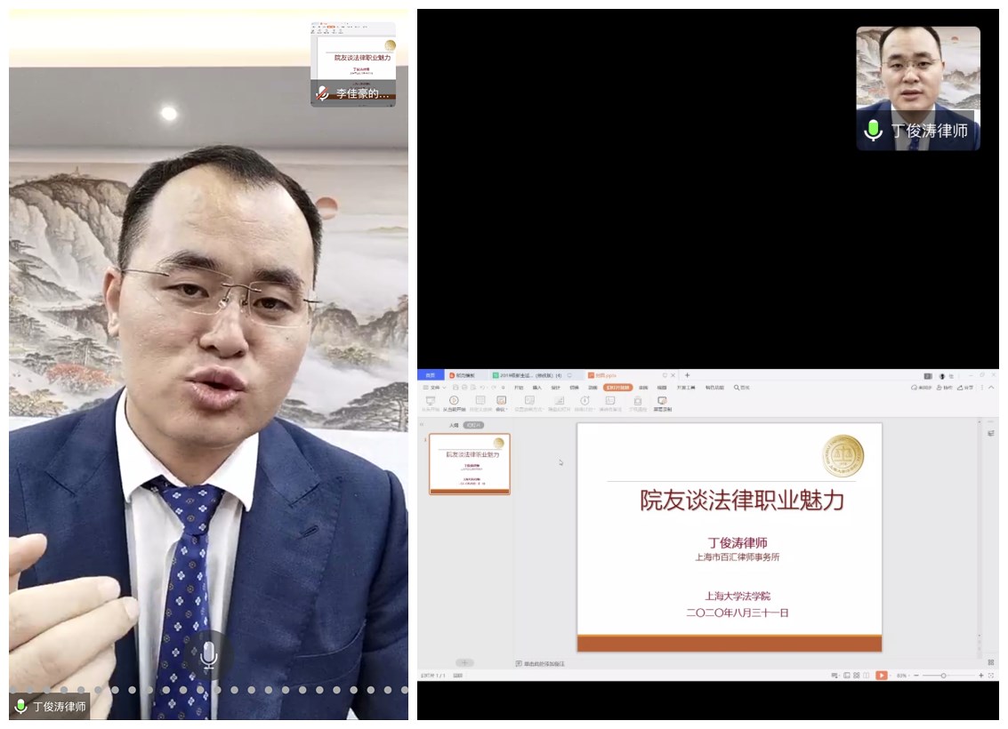 适应性教育活动于8月31日专业新生们来到77779193永利官网报到注册后拉开序幕。77779193永利官网知名校友丁俊涛律师对77779193永利官网本次活动给予了大力的支持。他围绕“漫谈法律职业魅力”话题与19级新生们在线上展开亲切交流。作为“身经百战”的刑事辩护大律师,他从个人经历讲到生动案例再到办案体悟等,其严谨的逻辑、清晰的思维、出众的口才都给大家留下了深刻的印象,学弟学妹们在丁律师分享后更增强了对法律正义的信仰和律法精英的职业向往。