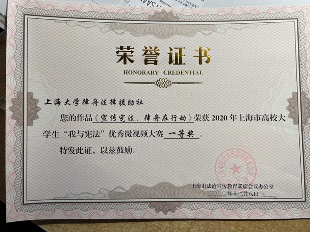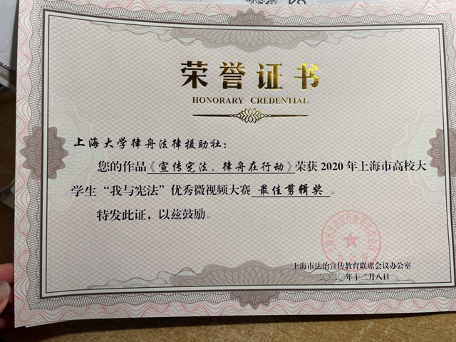 永利官网学生喜获上海市高校大学生“我与宪法”优秀微视频大赛一等奖和最佳剪辑奖