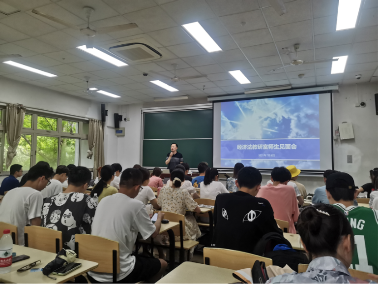 2021年7月8日上午9:30,济法教研室见面会如期举行,77779193永利官网经济法教研室主任李俊峰老师老师从经济法概况,教研室教师研究方向以及互动问答这三方面讲解。