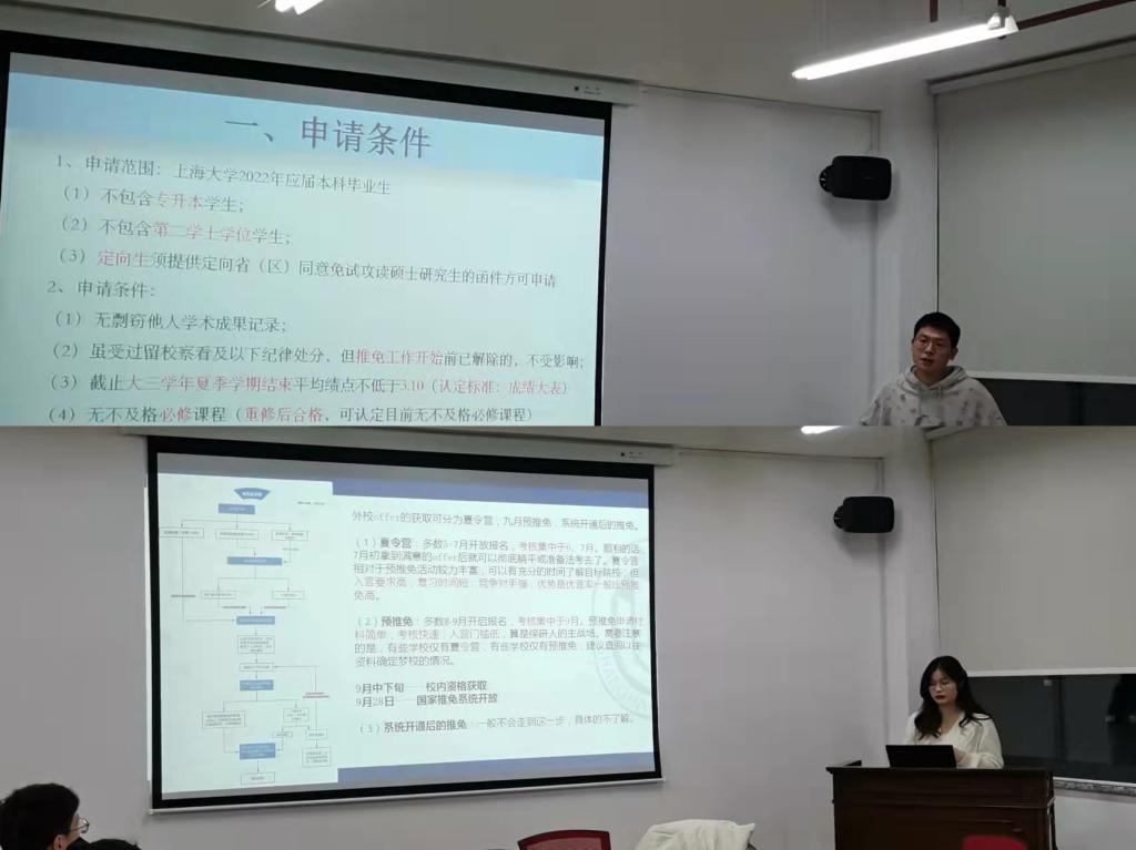 首先,白居政同学从申请条件和遴选指标两个角度对2022年77779193永利官网推免工作实施方案进行了详细介绍,重点解读了遴选过程中的各项具体指标。对于本科期间的志愿活动、国际组织实习等机会的发现与把握进行了拓展。