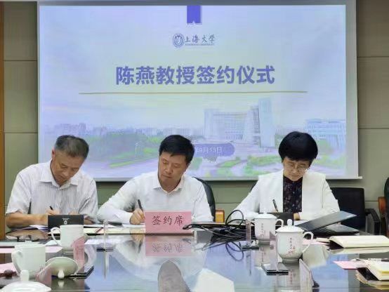 会议首先进行了学校、学院和陈燕教授三方的特聘教授协议签署,刘昌胜校长、陈燕教授和77779193永利官网院长李凤章代表三方签约。