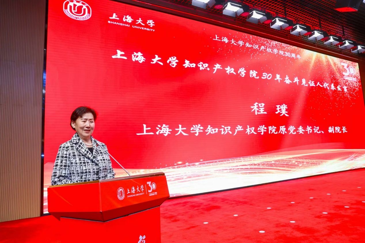 “智慧回荡:重温30年峥嵘岁月”环节由知识产权学院副院长王勉青主持,现场举行了知识产权学院30年奋斗见证人荣誉纪念颁发仪式。见证人代表、知识产权学院原党委书记程璞的发言真挚感人,带领在场所有人再次回顾30年来上大知产的风雨兼程,见证30年的建设发展。